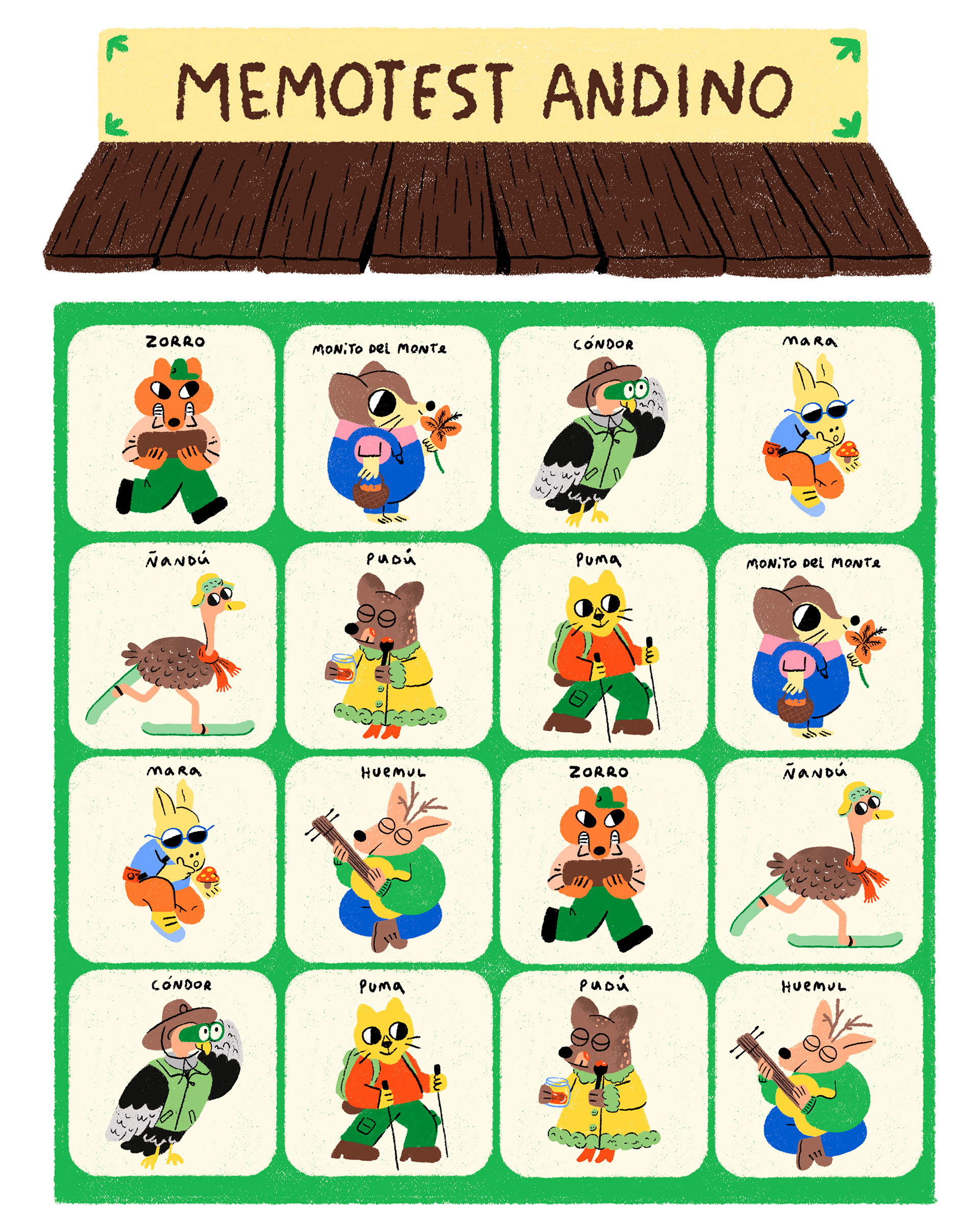 Patagonian Animals Illustrations for a Memory Game